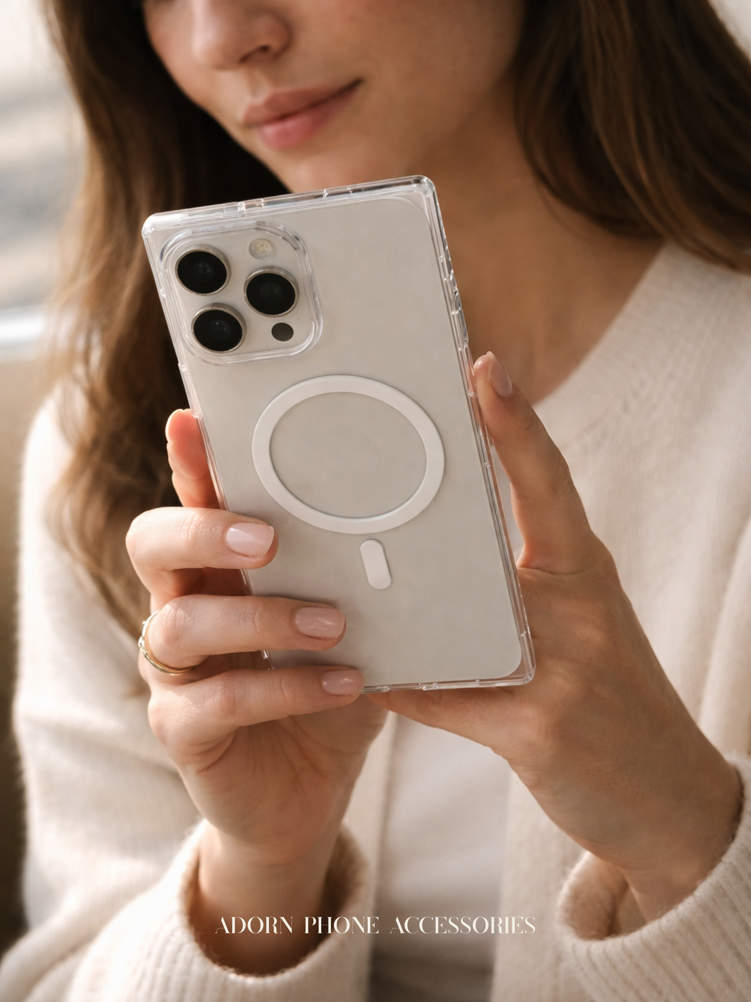 She’s our elevated take on the classic clear case. MagSafe-compatible and built with our signature rectangle silhouette - no basic rounded corners here.